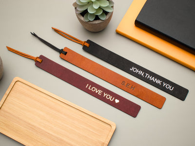 Choose from plain, gold and silver text along with one of 8 different leather colours. Each personalised bookmark includes a tassel in a complimenting colour (see pictures for reference).